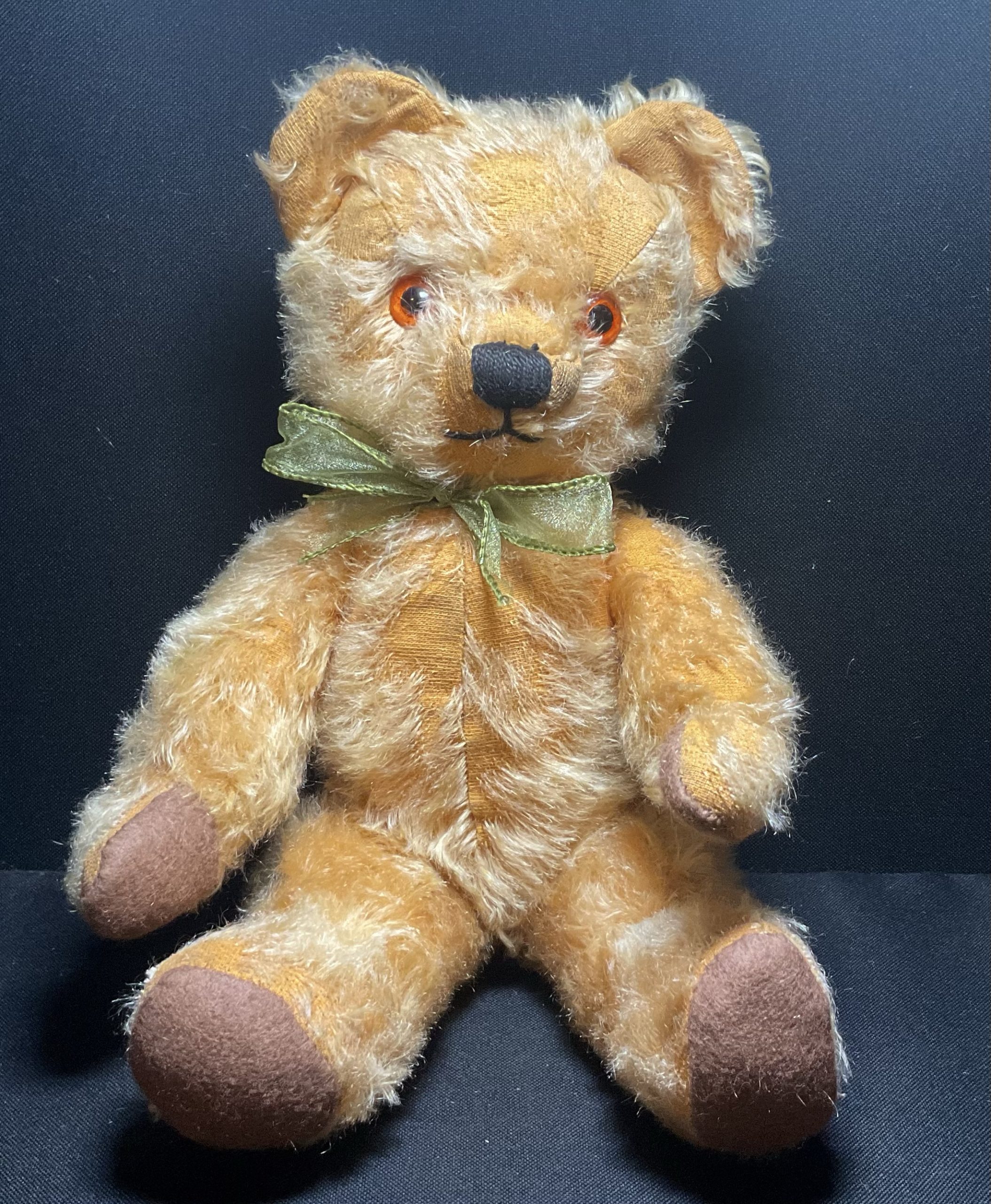 Drew is a lovely mohair 1960’s Chad Valley with minimal moth damage, he is fully jointed. He is approximately 46cm. He has had new traditional wool felt pads and a good clean and also has been moth treated.