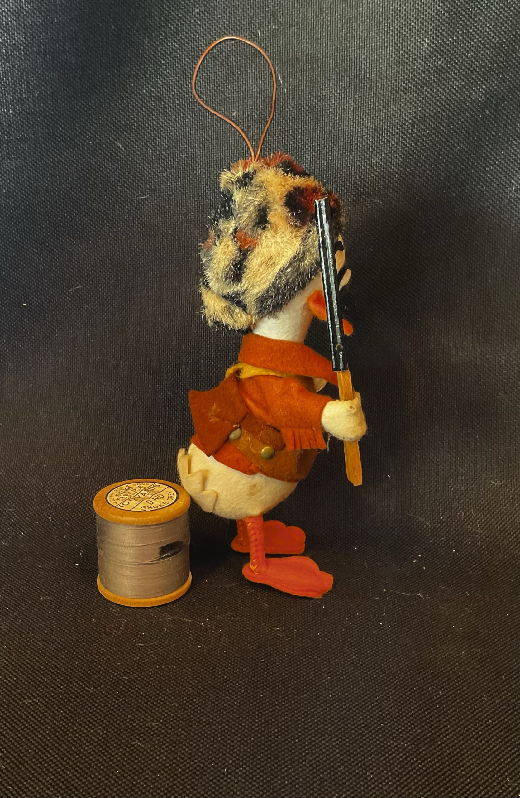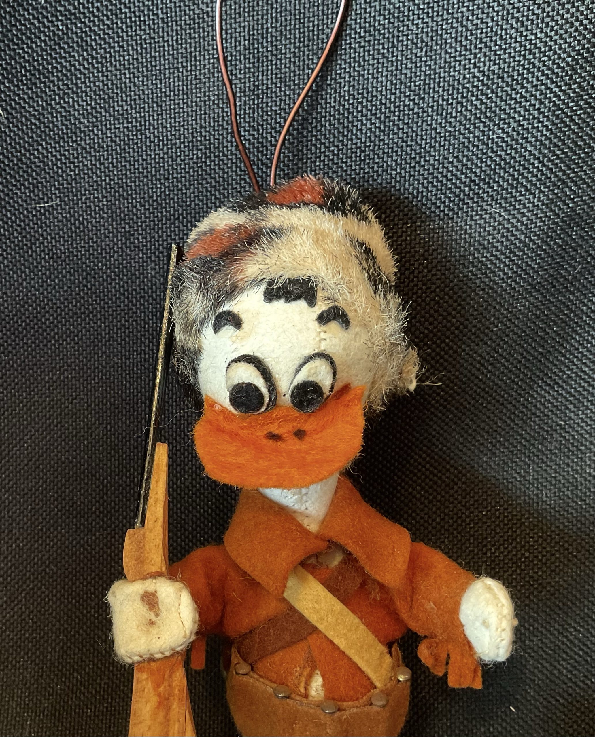 Lenci Duck Italian Lenci made 1960s Donald Duck character ‘Davey Crockett’ Wool felt wired duck with original hanging loop from head and rifle, bullet belt etc. A real well made collectible. Stands at approx 14cm