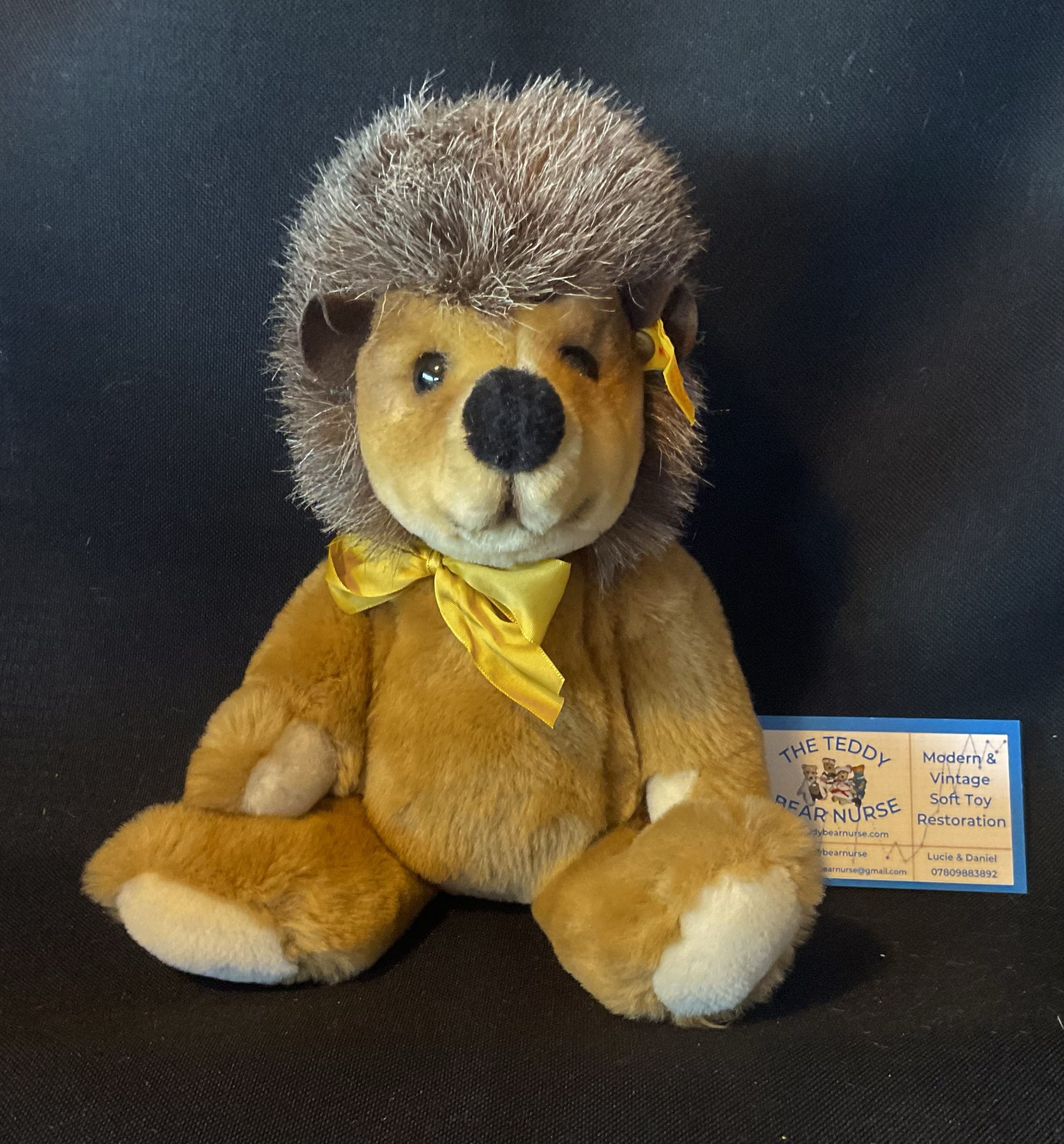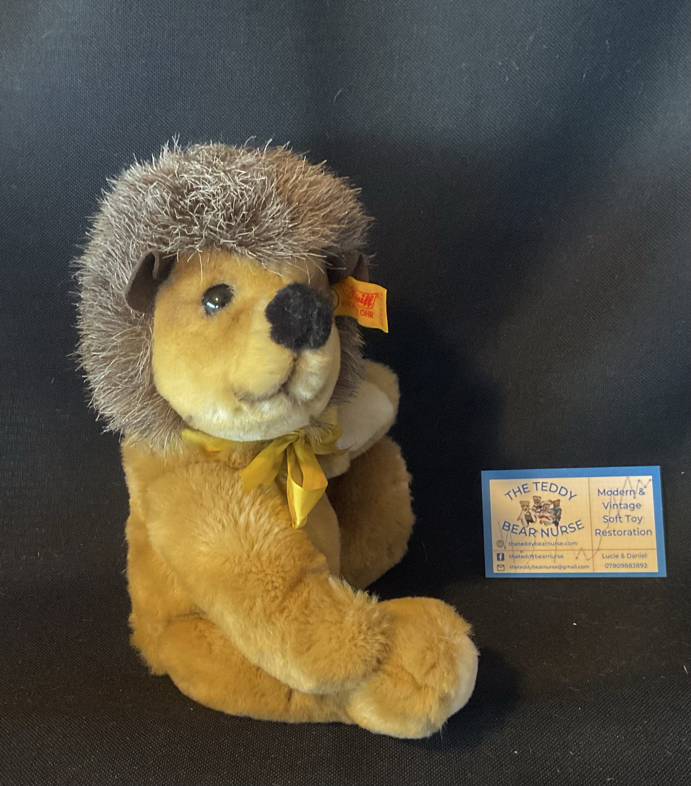 Possy 1989 Steiff German made hedgehog. Super soft plush, fully jointed character in all original condition. With original bow. Only made for one year so quite hard to come by. Cleaned and checked over. Stands at approx 26cm
