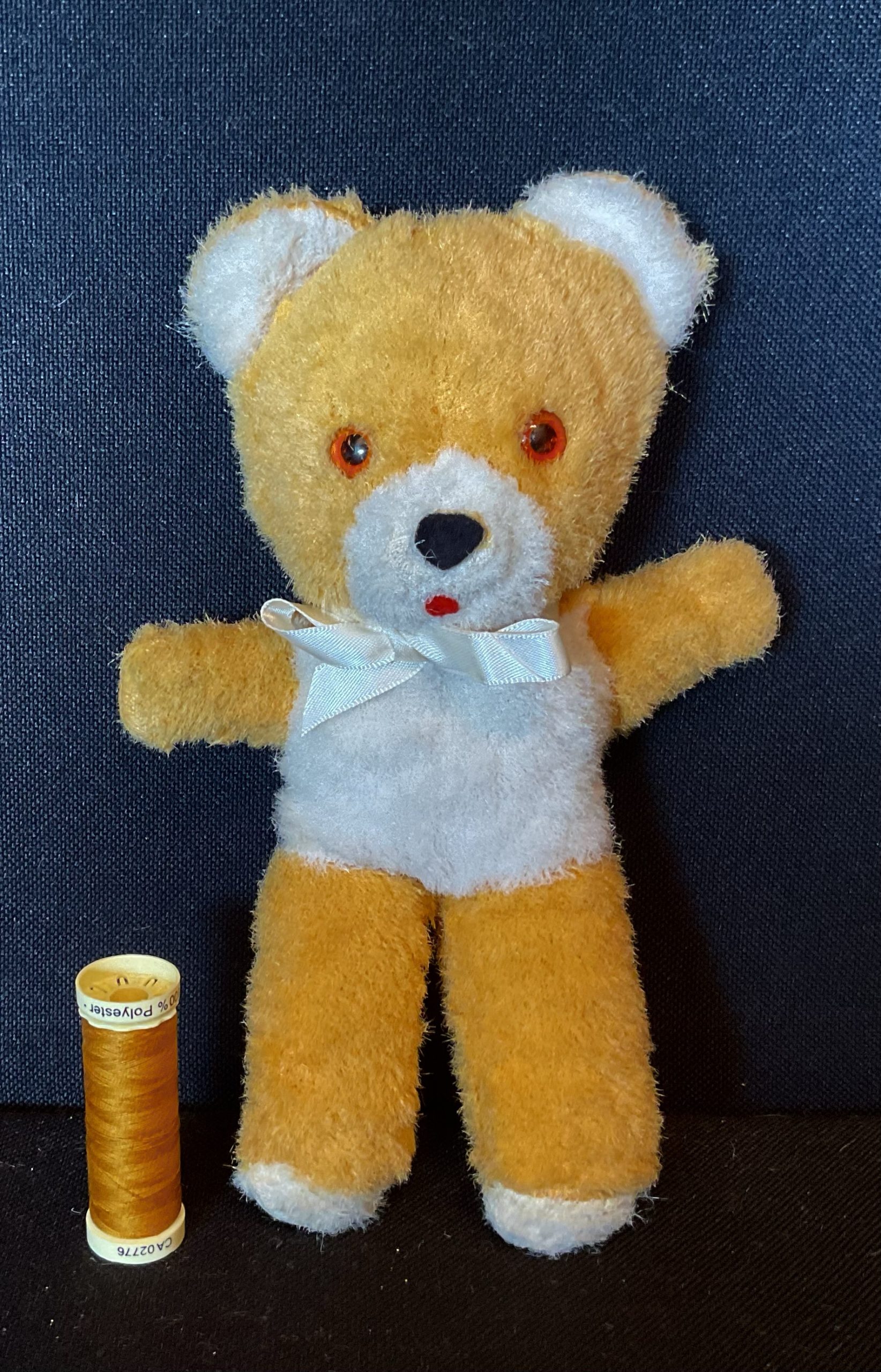Snug Little vintage 1960s pram toy. So soft and cute I don’t mind if he stays really! Aprox 19cm standing. Probably Chad valley make. Cleaned checked over.