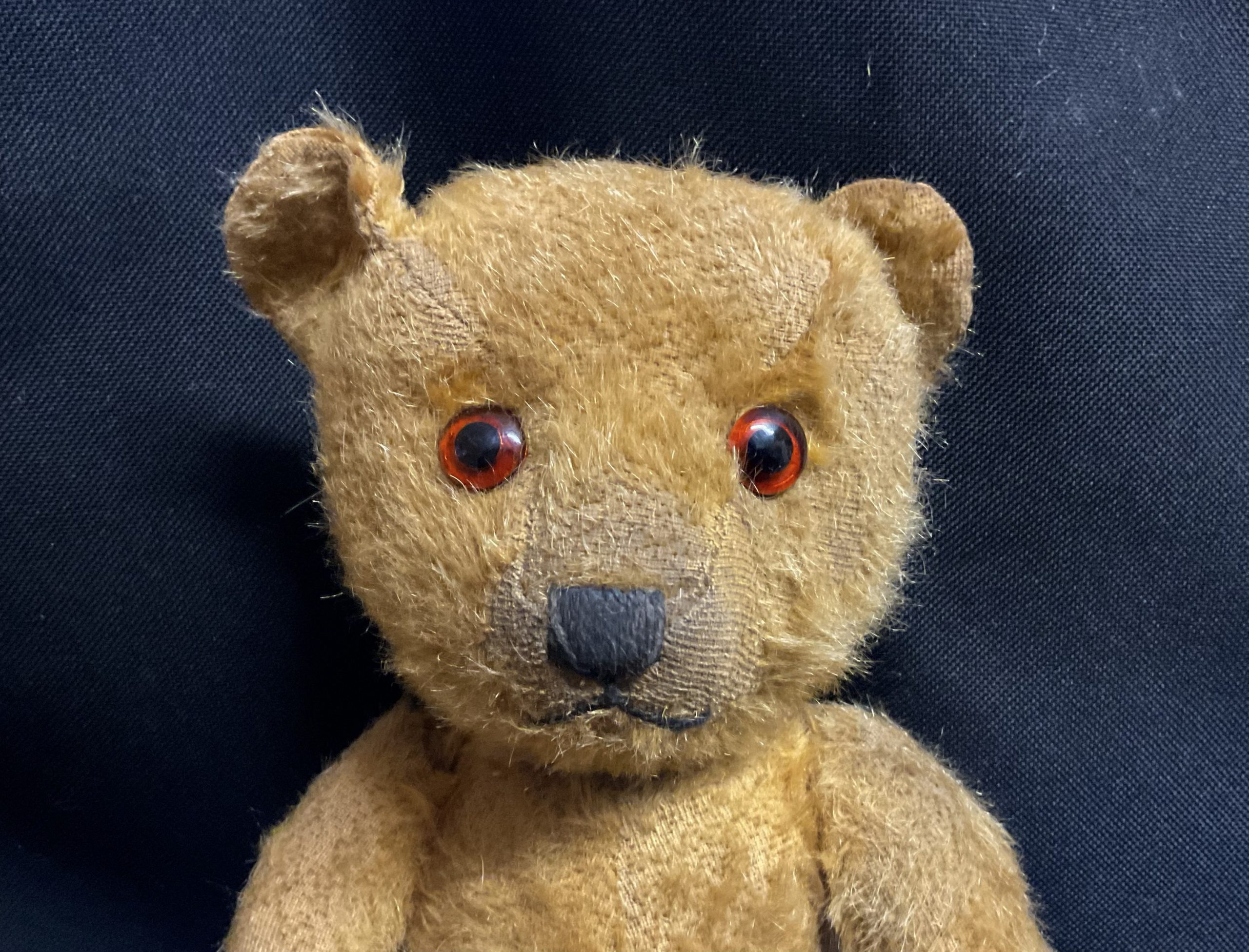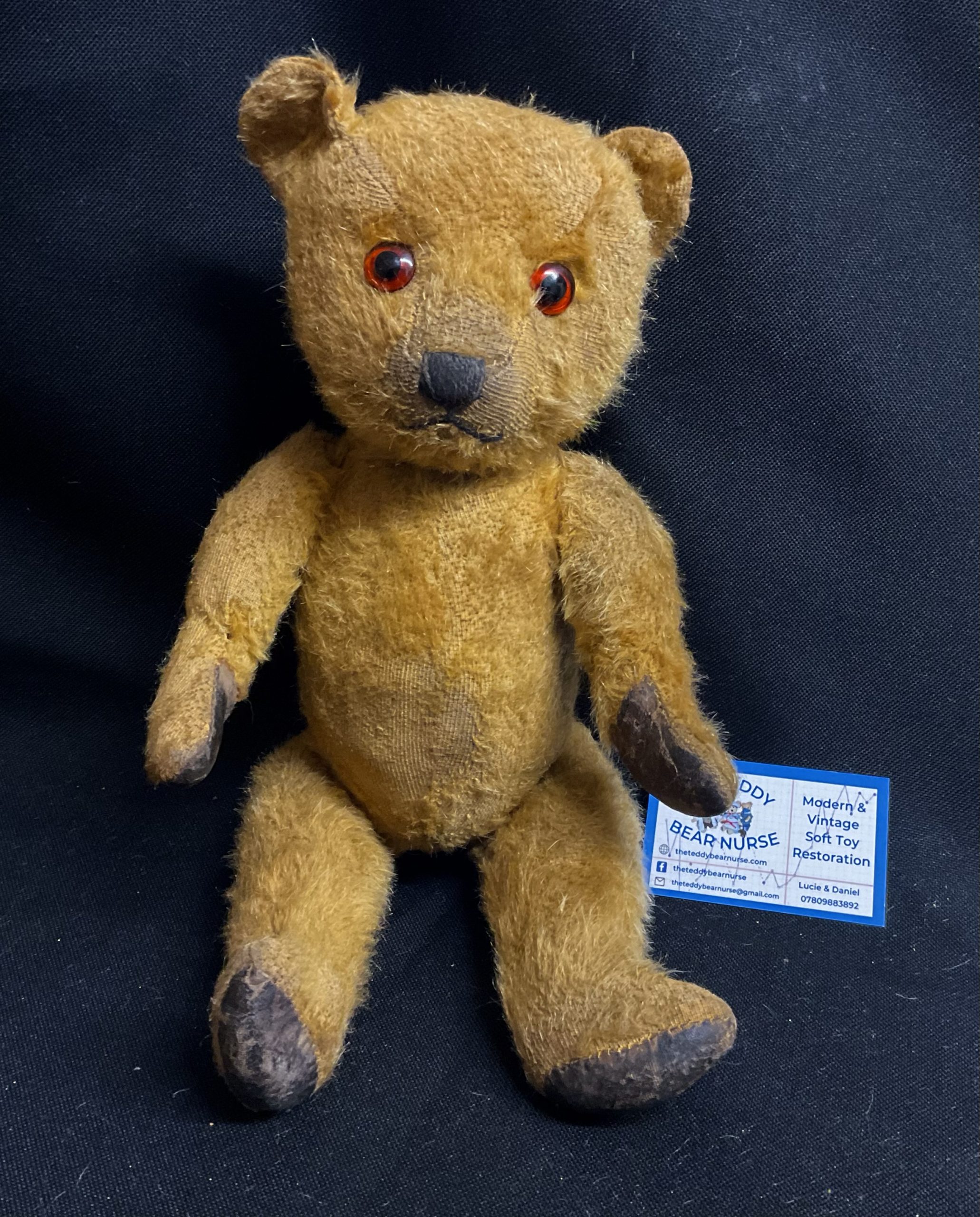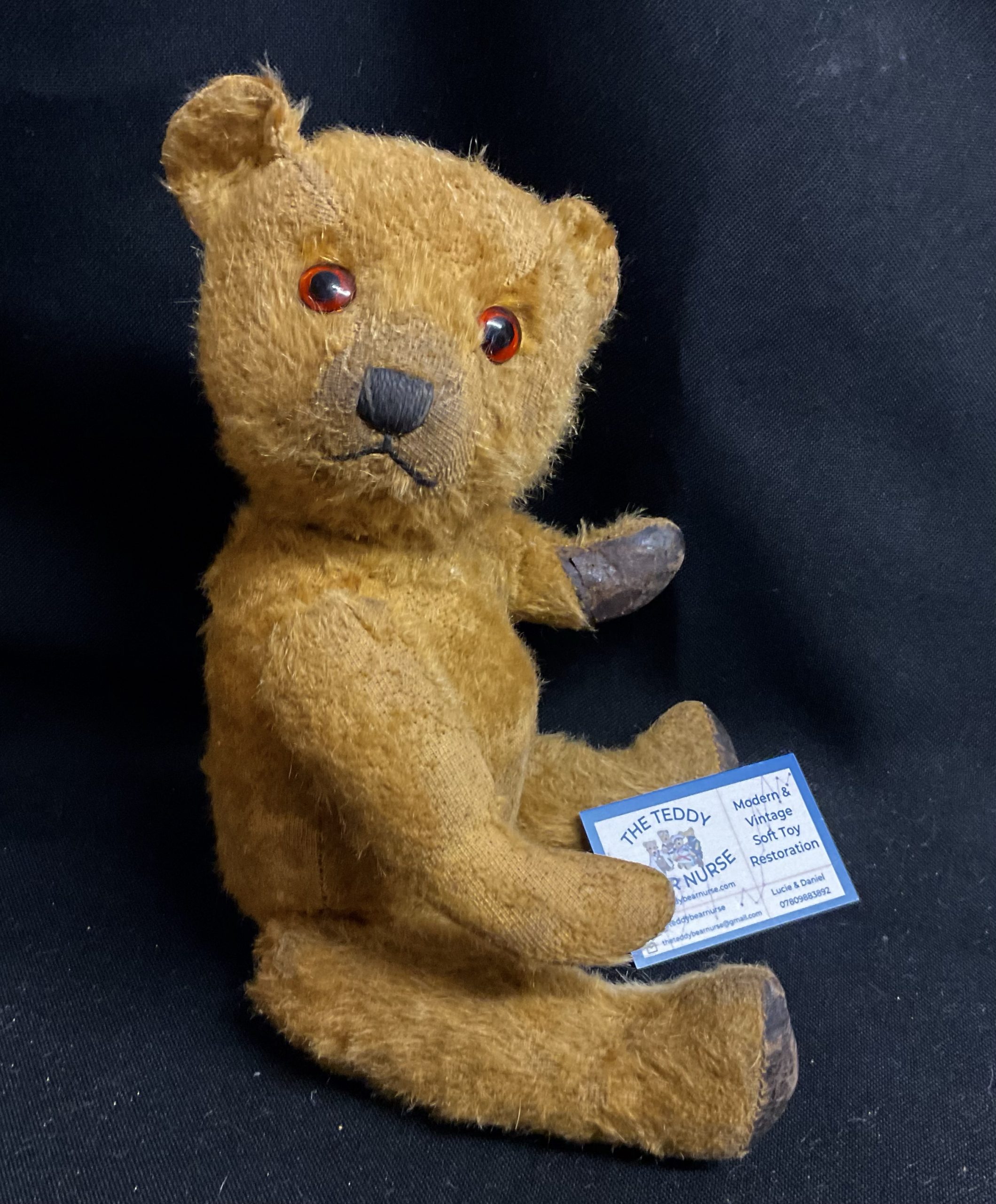 Watson This old Chiltern bear dates from 1930/40s. Dark mohair with original rexine paw pads glass eyes and mouth and nose. Even his squeaker works. Great antique collectors piece standing at 39cm tall